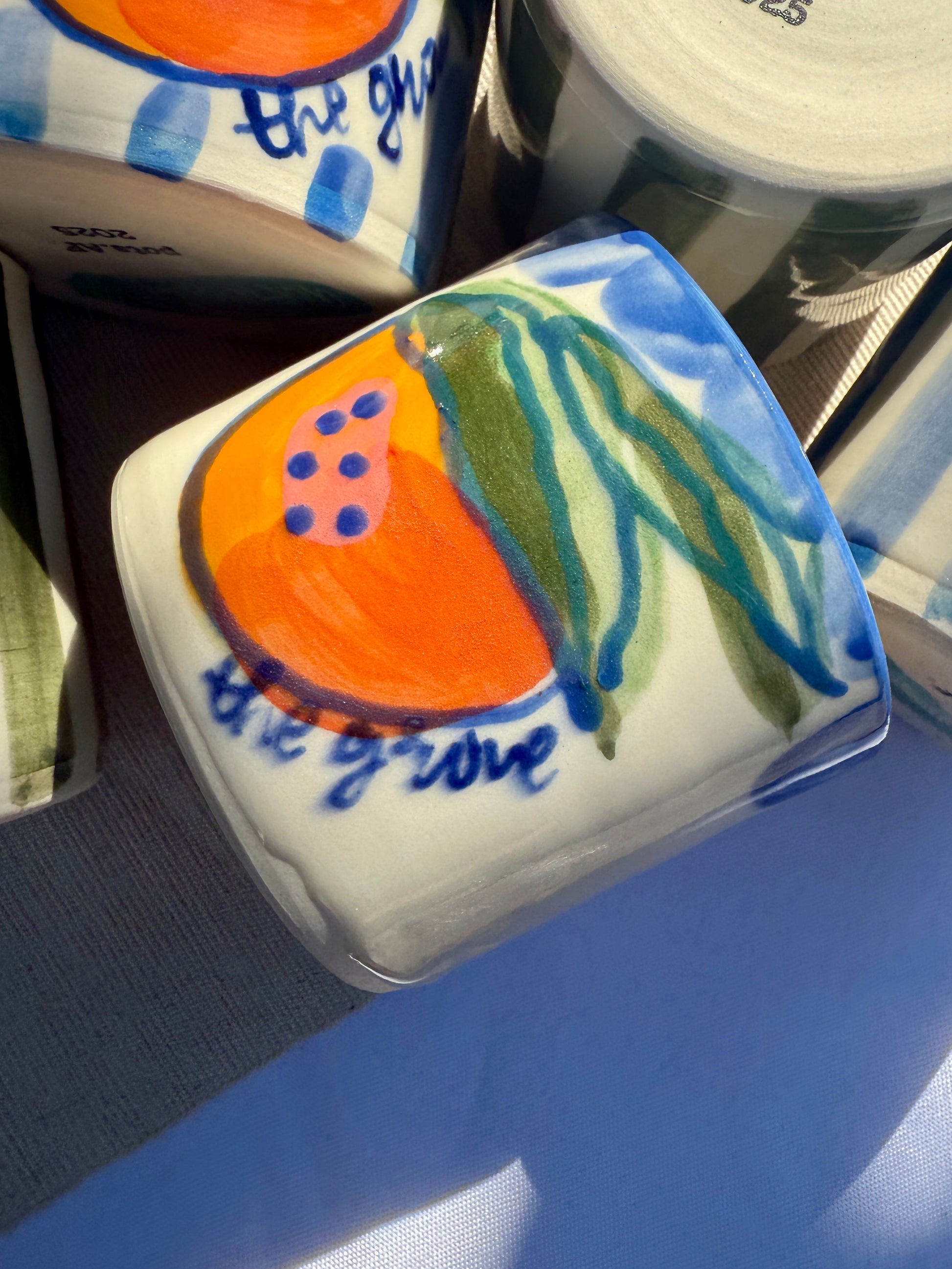 Porcelain. Dishwasher and microwave safe, though handwashing is always suggested. *Measurements are always plus/minus an oz! If you're seeking a set, please email me after purchasing so that I can make the best pair possible!