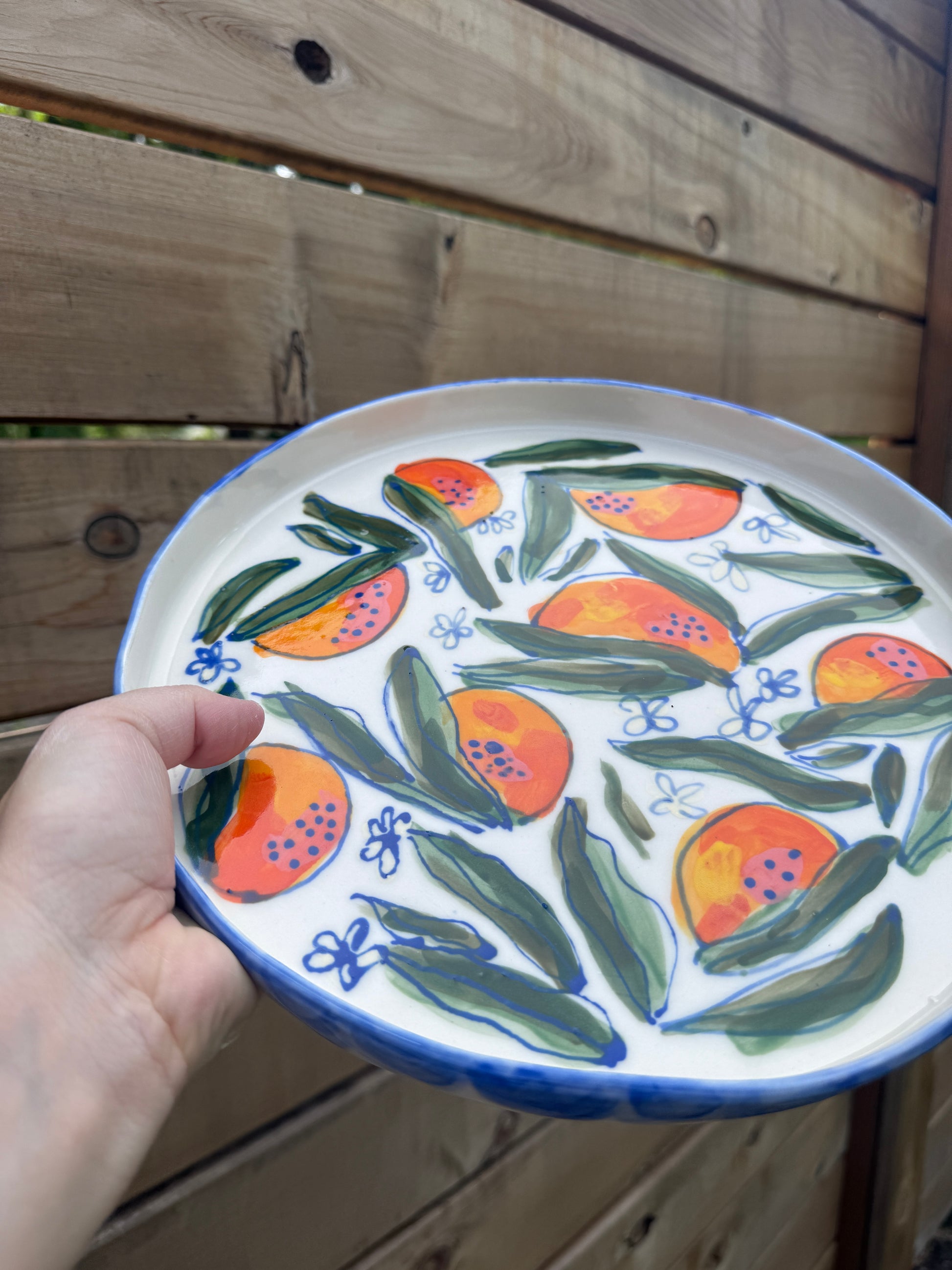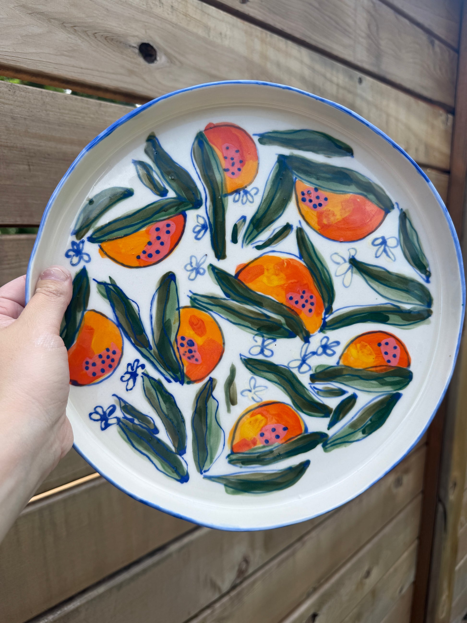 Meet the perfect round hosting platter- raised edges to make moving from the kitchen to the table/buffet easy and large enough to hold all the fun (without being too big that you'll never, ever be able to actually pass it around the table).