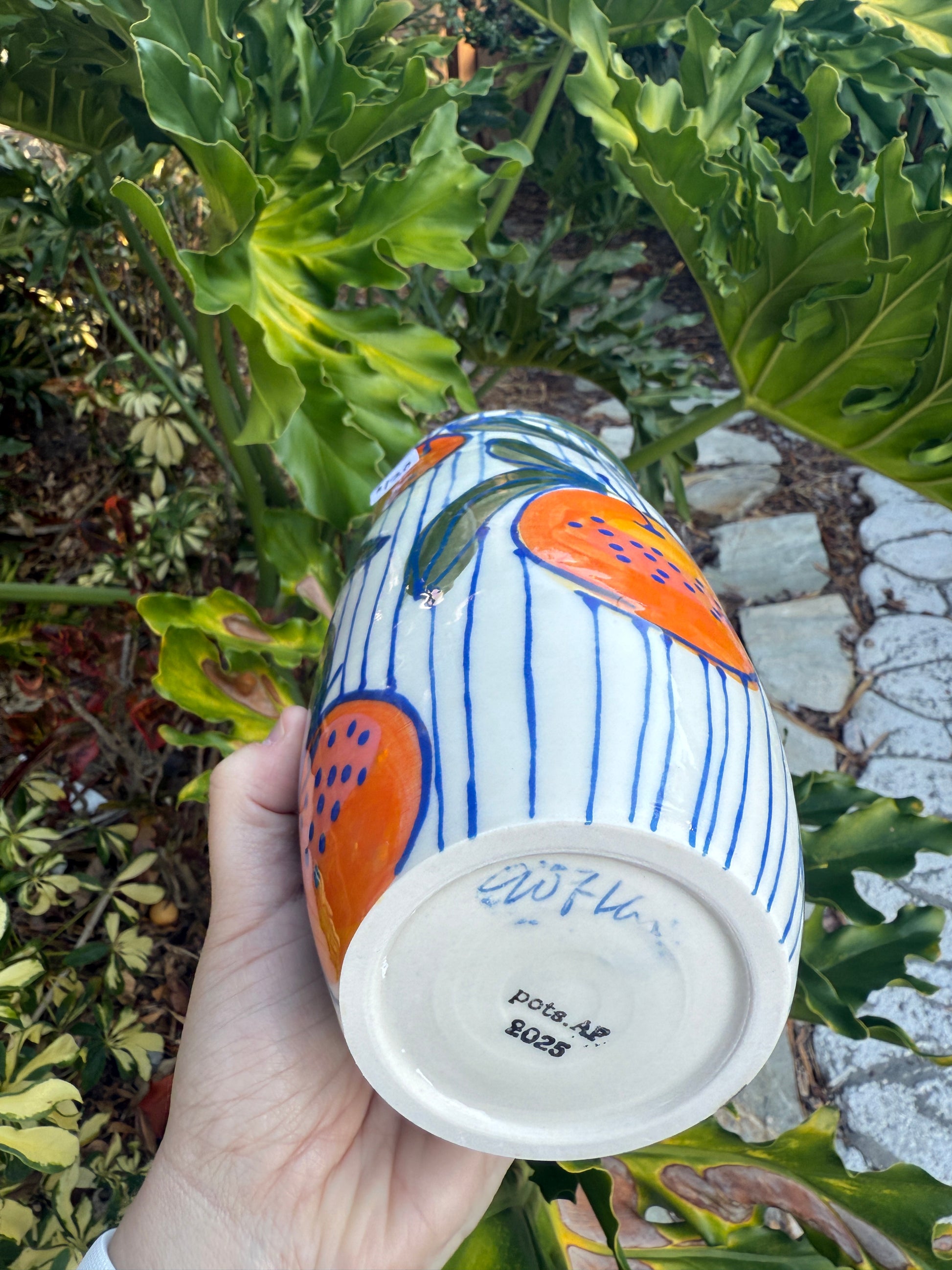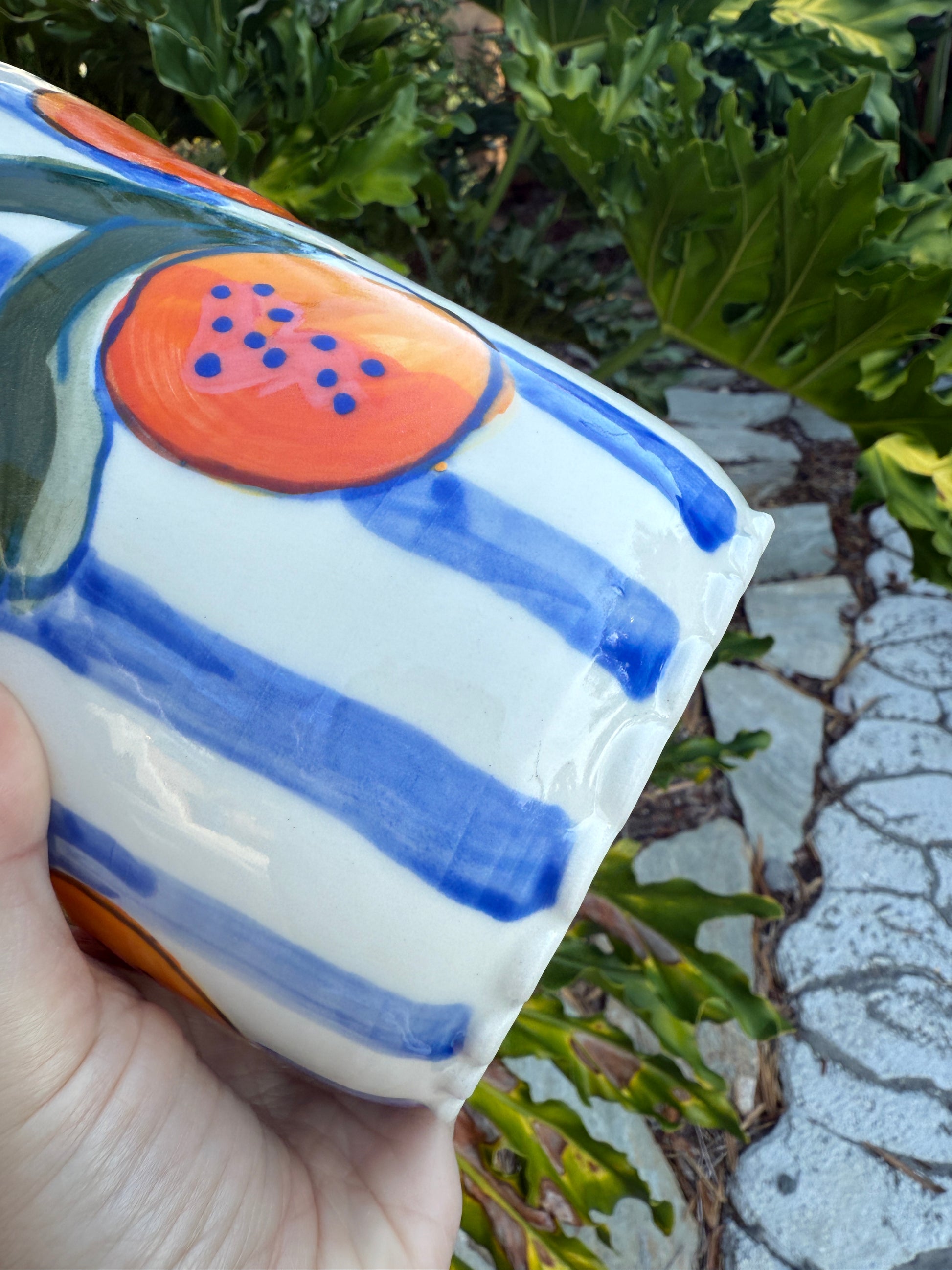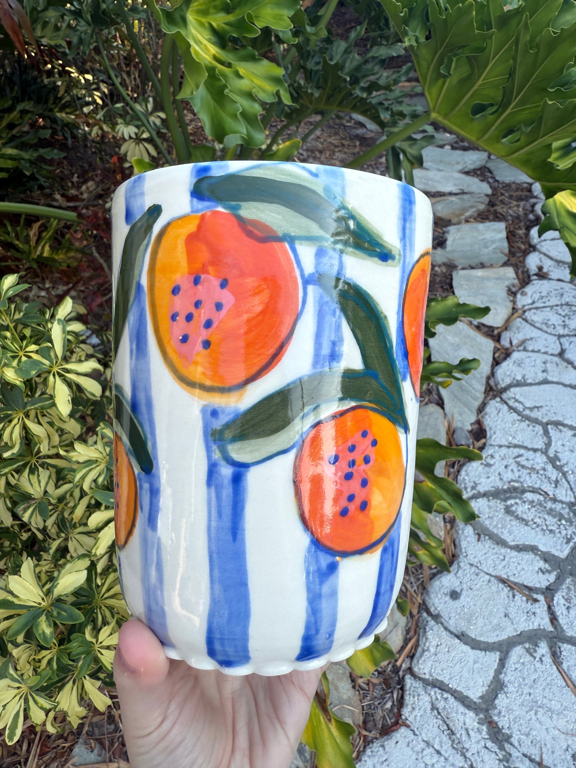 Squatty Stripey: 6.5" high, 5" wide